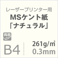 | MSケント紙紙腰が強く伸縮が少ない高級紙です。長期保存性に優れ、賞状や領収書用途に、またカードや紙飛行機・紙器類など機能を生かした用途など、さまざまな分野で使用されています。 色は「ホワイト」「ナチュラル」「クリーム」の3種類。 名刺・賞状・証書・カード・紙飛行機などに。 *2014年1月MSケント紙「ホワイト」はマイナーチェンジのため商品仕様が変更となり、白色度が高くなりました。 【レーザープリンター用紙印刷方法】 厚手の紙やシールをご使用の場合は、用紙設定を厚紙などに変更してご使用ください。 通常のコピー用紙(普通紙設定)のままではトナーの定着温度が低いため、完全に定着しない場合がございます。■厚み : 0.3mm(300μm)■枚数 : 400枚■サイズ : B4(257mm×364mm)■坪数 : 261g/m2■出荷予定:約2〜3営業日出荷断裁加工賃(カット判の加工)一方向 1,000円(税別)MSケント紙「クリーム」 261g/平米 B4サイズ:500枚価格 27500円(税別) MSケント紙「クリーム」 261g/平米 B5サイズ:1000枚価格 27500円(税別) MSケント紙「クリーム」 209.4g/平米 B4サイズ:500枚価格 24600円(税別) MSケント紙「クリーム」 209.4g/平米 B5サイズ:1000枚価格 24600円(税別) MSケント紙「クリーム」 157g/平米 B4サイズ:500枚価格 17800円(税別) MSケント紙「クリーム」 157g/平米 B5サイズ:1000枚価格 17800円(税別) MSケント紙「ナチュラル」 261g/平米 B5サイズ:800枚価格 22000円(税別) MSケント紙「ナチュラル」 209.4g/平米 B4サイズ:400枚価格 19800円(税別) 洋紙、和紙、プロ用写真用紙、ハイアマチュア用印画紙、大手では扱っていない特殊用紙など、幅広く扱っています。 ご要望も積極的に店舗開発に活かします。 紙への疑問質問ありましたら、お気軽にお問い合わせください。 紙への愛情日本一を目指す、松本洋紙店です。